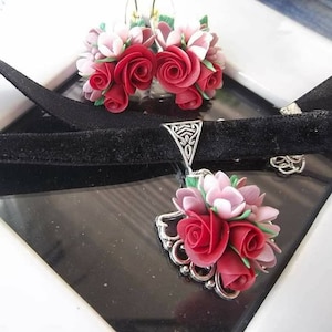Realistic Blooming earrings made of baced polymer clay.