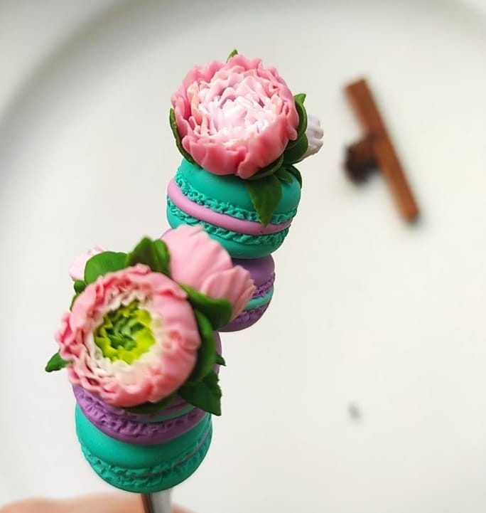 Macaroons and peony spoon handmade Aesthetic sweet spoon Custom spoon pink Cute tea spoon for tea Gift for a sweet tooth Kitchen decor